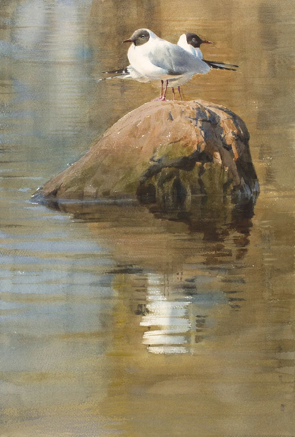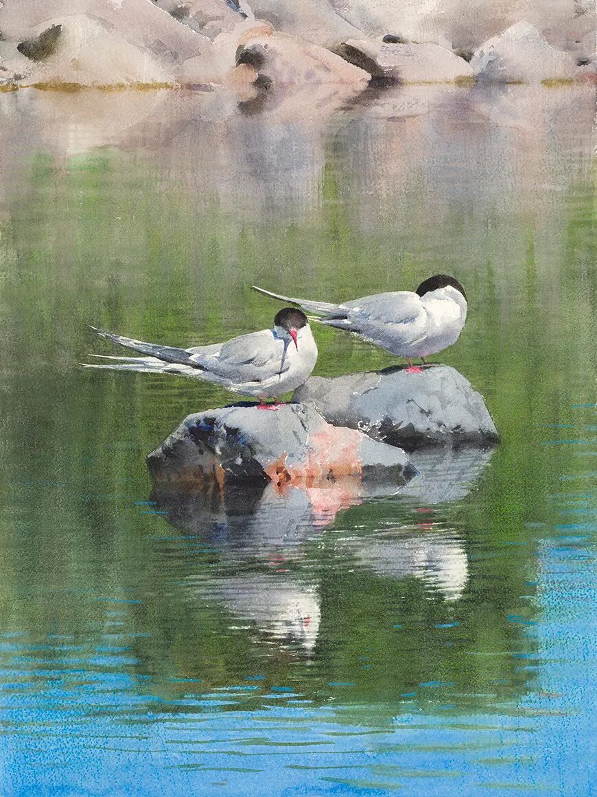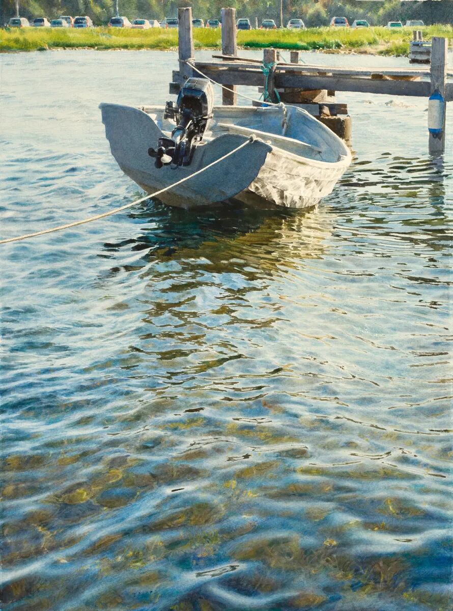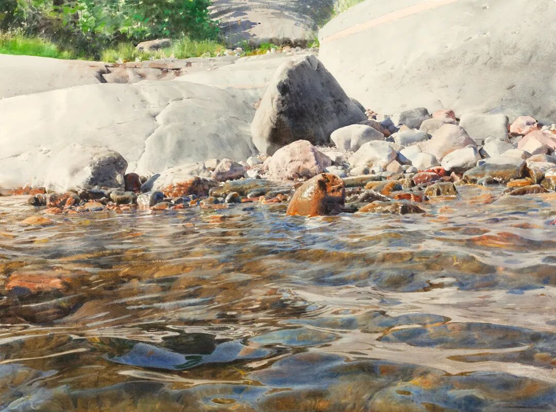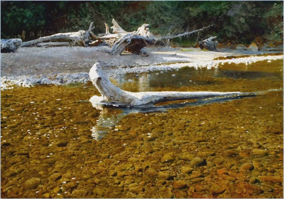 在他的画里,水是光的容器,光是画的灵魂。他极少使用白色颜料,仅靠精准的留白与冷暖色彩对比,就勾勒出北欧特有的清冷天光、水面粼粼波光,还有薄冰下通透的光影折射。