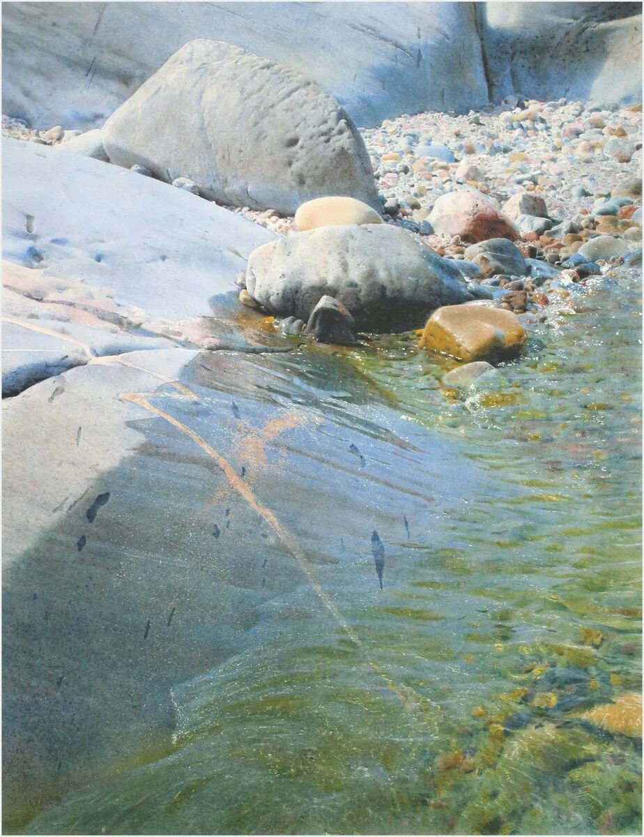 水石交响,光影为韵:波罗的海的粗粝岩石、澄澈水面,在他笔下被赋予生命。阳光掠过岩石的明暗交界、微风拂过水面的细碎涟漪、积雪覆盖下的柔和反光,每一处光影都细腻到极致,仿佛能听见水流的轻响、感受到阳光的温度。