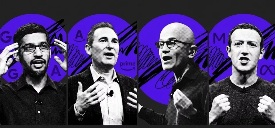 Alphabet CEO皮查伊、亚马逊CEO贾西、微软CEO纳德拉、Meta CEO扎克伯格(从左至右)