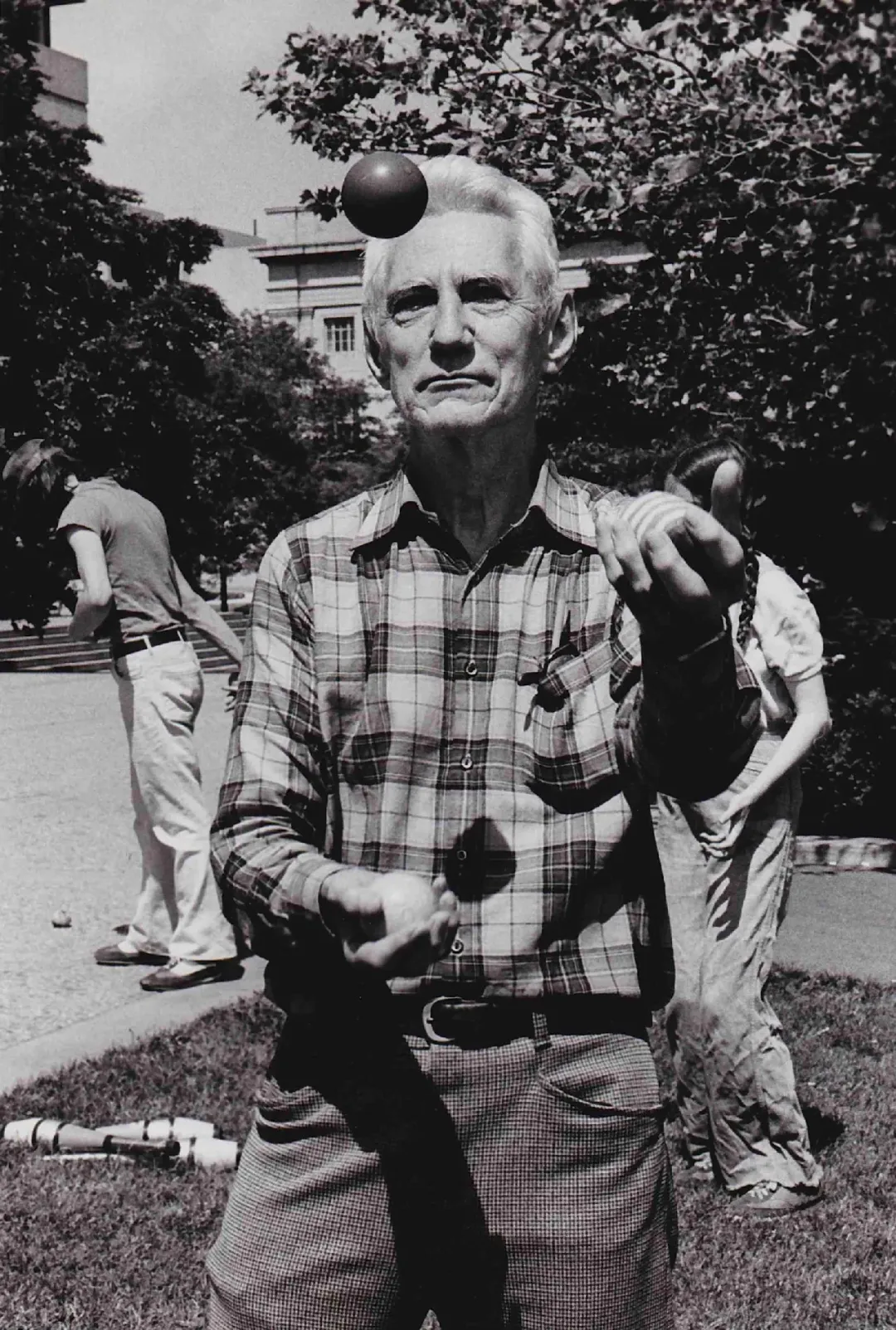 当掌声渐渐平息,众人只听到了一句话:“这很荒谬!”他没有再说什么,而是从口袋里拿出了3个球,开始表演抛接杂耍。