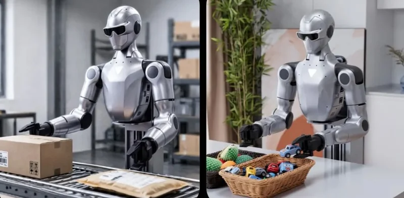 从官宣海报来看,这款双臂机器人可以胜任工厂里拧螺丝、搬运快递、分拣货物等工作,可适用于工业场景。