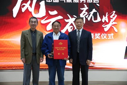 会上,中国气象服务协会会长许小峰、中国科学院大气物理研究所党委书记陆日宇为高登义颁发了风云成就奖。