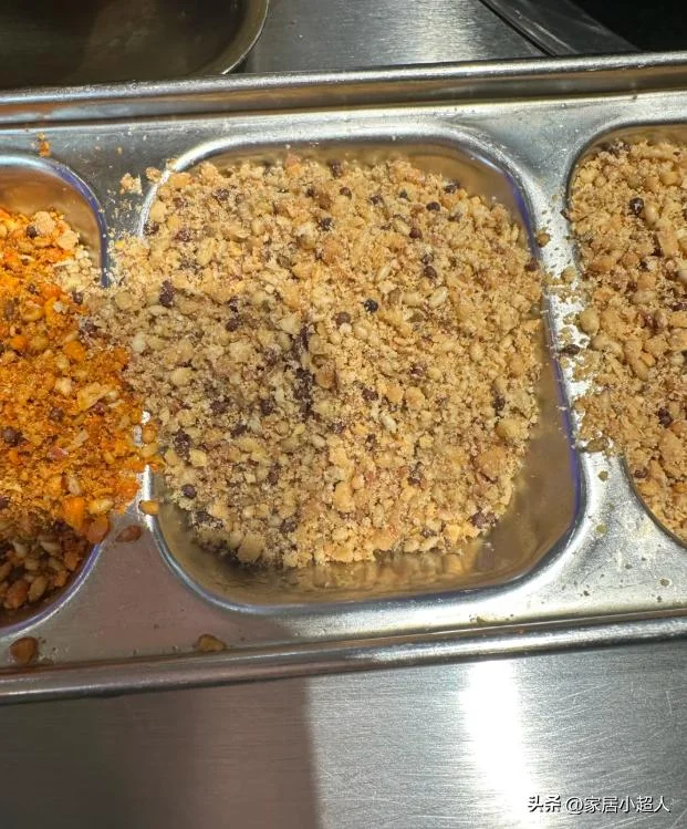 有很多自助餐,为了能让消费者少吃一点,会专门在蘸料里面放压缩饼干碎,这些压缩饼干跟烧烤料的孜然、辣椒粉,全都混合在一起,根本看不出来,