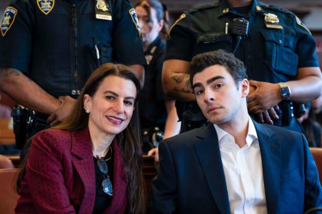 去年12月,路易吉・曼吉奥尼与其律师凯伦・弗里德曼・阿格尼菲洛在纽约市出席预审听证会。图片来源:CHRISTIAN MONTERROSA/POOL/EPA/SHUTTERSTOCK