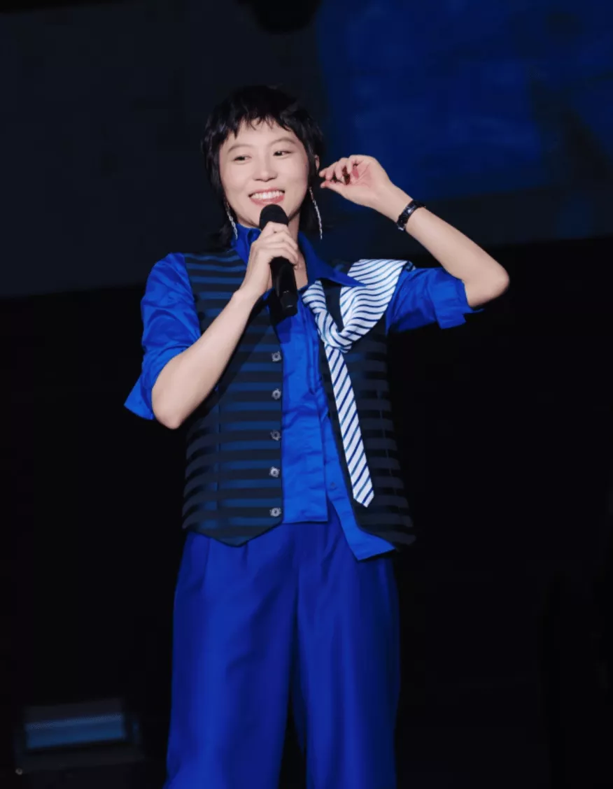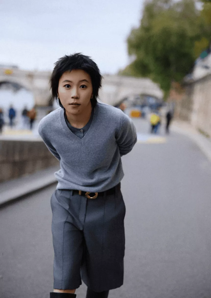 她状态特别好,皮肤白、细腻,五官不像妈妈王菲,倒是和爸爸窦唯一模一样。