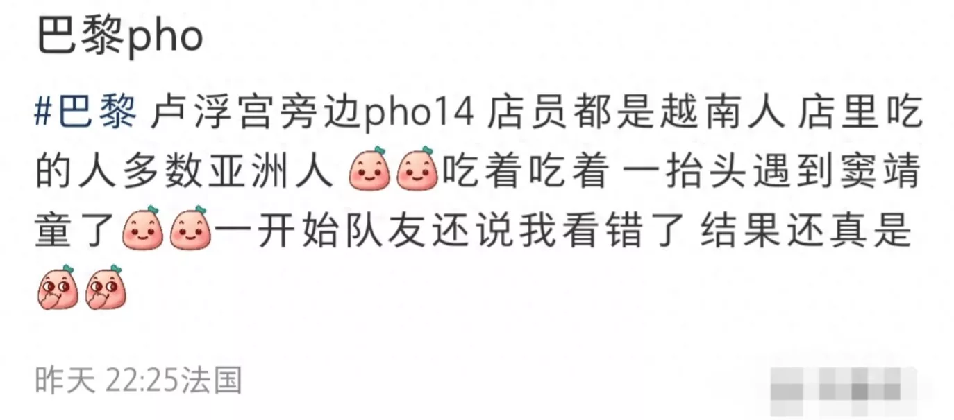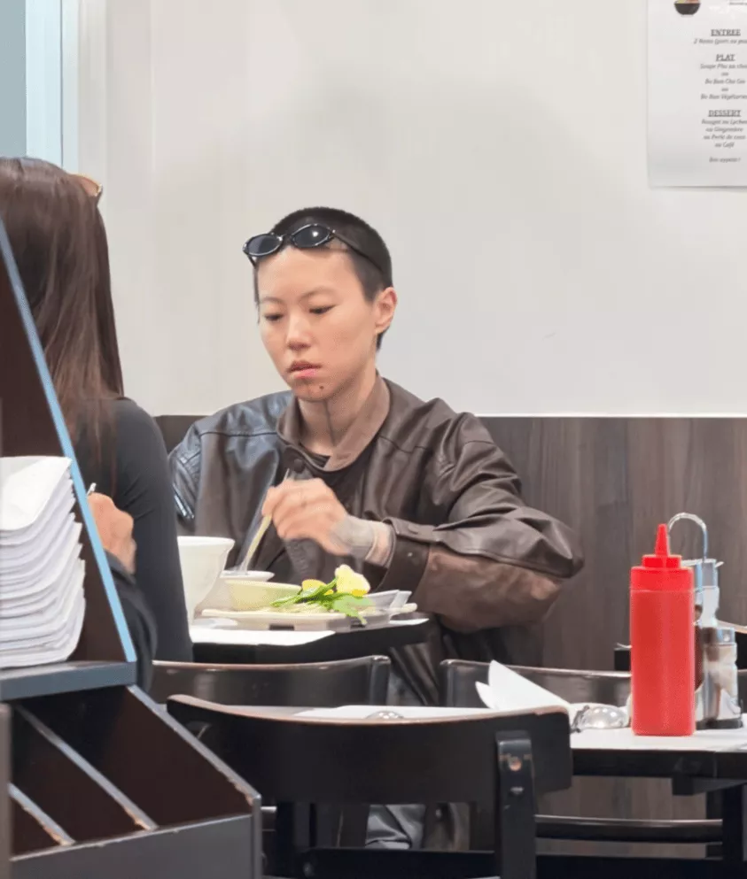 4月26号,有网友在巴黎卢浮宫旁边吃饭,抬头就看见了窦靖童,随手拍了几张照片。