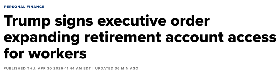 美国总统川普于周四在白宫签署了一项新的行政命令,旨在为目前无法享受401(k)等雇主退休计划的劳动者提供新的退休储蓄渠道,扩大美国民众的养老金覆盖范围。